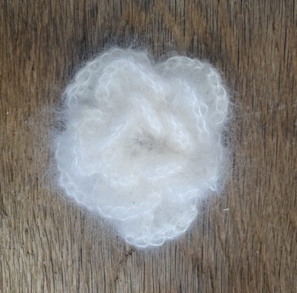 Broche en mohair réalisée au crochet à partir de notre film plume 77% mohair et 23 soie